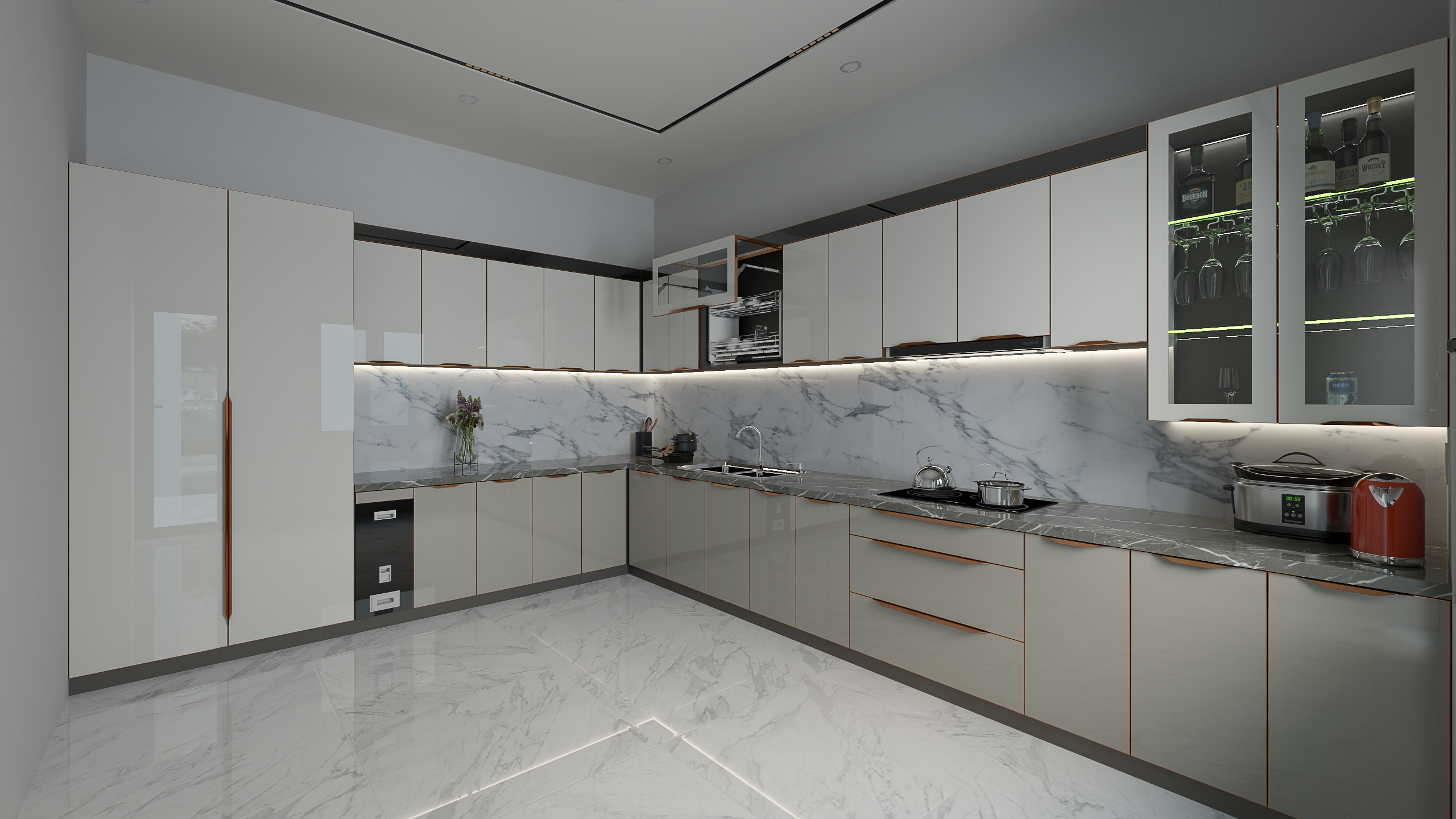Thiết kế tủ bếp tối giản là xu hướng ngày nay. Mẫu tủ bếp này thường sử dụng màu sắc nhẹ nhàng như trắng, xám hoặc đen, kết hợp với đường nét đơn giản và tinh tế. Các khối hình học và vật liệu như kính cường lực hay nhôm tạo nên một diện mạo hiện đại và sạch sẽ cho không gian nhà bếp.