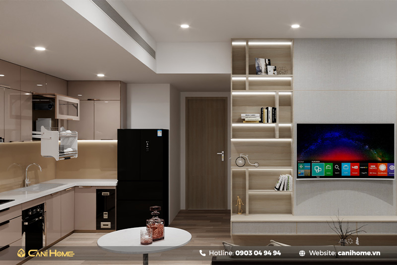 • Chất liệu tủ bếp: Tủ bếp nhôm hợp kim nguyên tấm – cánh kính, tay nắm CNC. Sự kết hợp các phụ kiện Inox thông minh, tối đa công năng sử dụng, đồng thời tạo nên không gian mở vô cùng thoải mái.