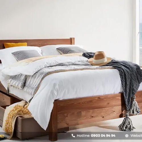 Giường gỗ lim phong cách Scandinavian
