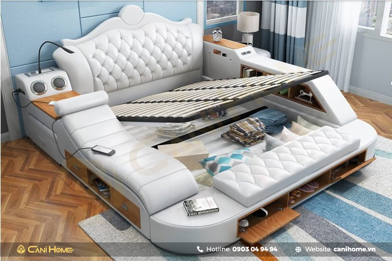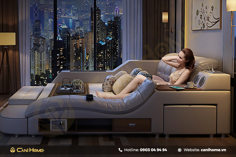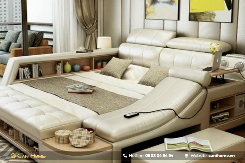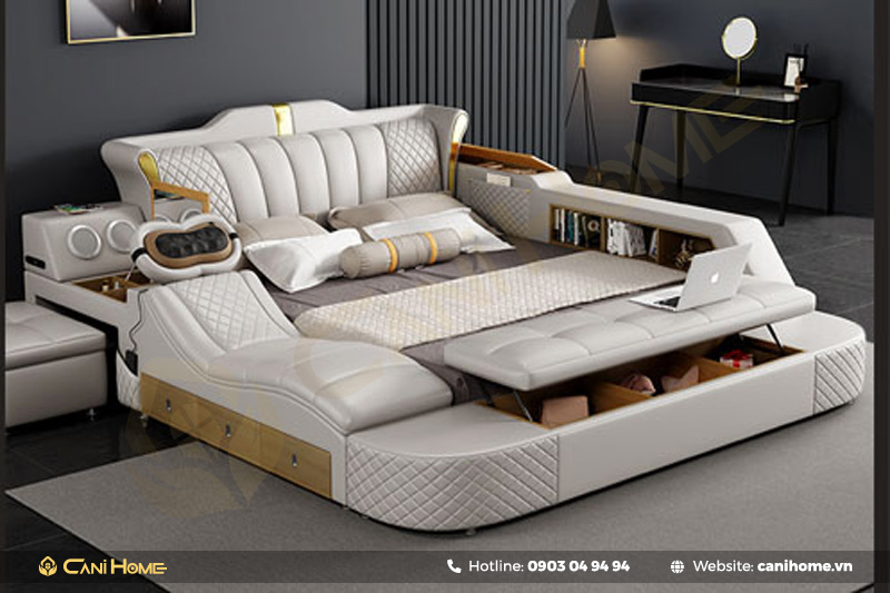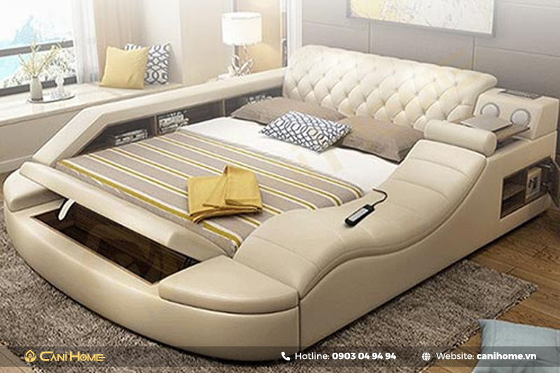 Giường ngủ massage là sản phẩm đột phá với nhiều tính năng tiên tiến, giúp tối ưu hóa không gian, đặc biệt là những khu vực có diện tích hạn chế. Với công năng vượt trội, sản phẩm này không chỉ tiết kiệm diện tích mà còn mang lại một nơi nghỉ ngơi đầy đủ tiện nghi. Nếu bạn đang tìm kiếm giường ngủ massage với đa dạng chức năng, mẫu mã, hãy tham khảo ngay thông tin bên dưới của Nội thất Canihome.