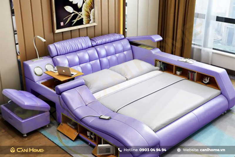 Giường ngủ đa năng Tatami có ghế massage màu xanh tím sang trọng