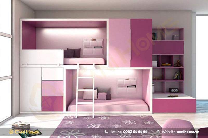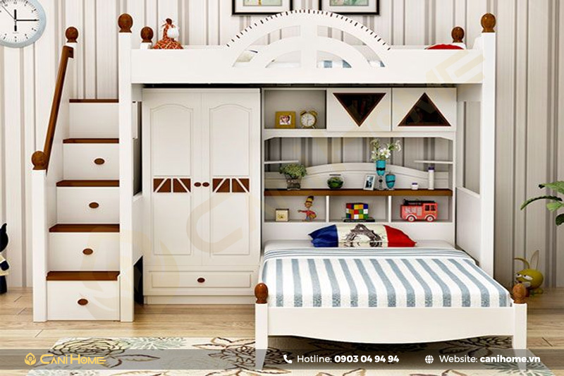 Đồng thời, mẫu giường này thường được thiết kế theo các chủ đề và màu sắc thú vị để phù hợp với sở thích của trẻ, tạo nên một không gian vui nhộn và sáng tạo cho việc nghỉ ngơi và lưu trữ đồ đạc.