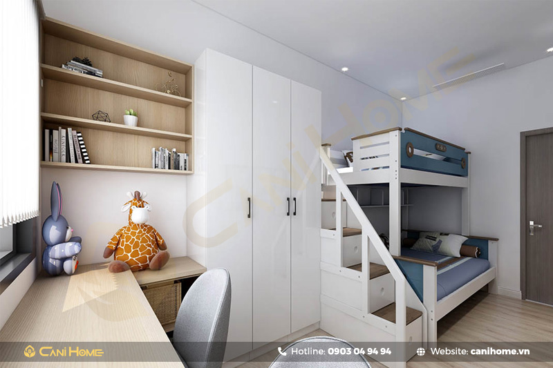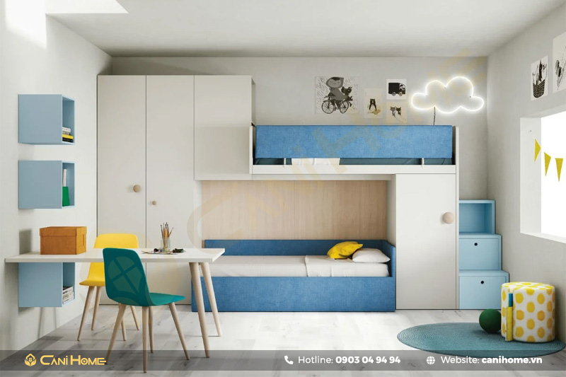 Giường tầng là nơi nghỉ ngơi thoải mái, tủ quần áo giúp bạn lưu trữ gọn gàng, và bàn học là nơi trí tuệ và sự sáng tạo được thăng hoa. Tất cả cùng tồn tại trong một không gian duyên dáng, làm tôn lên vẻ đẹp và tính thực tiễn của không gian sống.