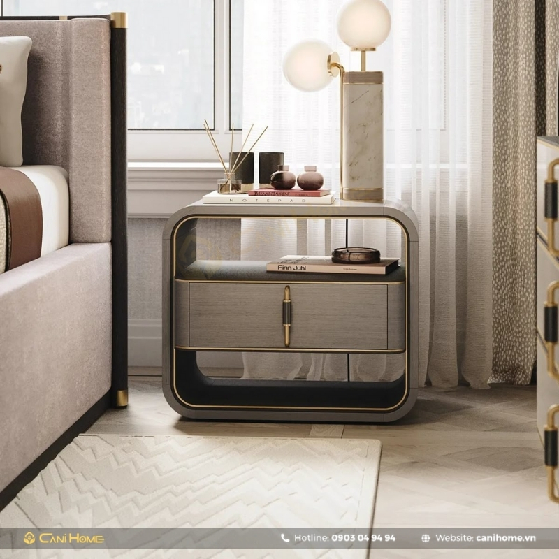 Tab đầu giường là món nội thất thường được bố trí ở hai bên giường ngủ, thiết kế đồng bộ với giường để tạo sự hài hòa cho tổng thể không gian. Không chỉ đóng vai trò trang trí, tab giường còn mang lại sự tiện lợi trong sinh hoạt – là nơi đặt đèn ngủ, sách, tài liệu hoặc các vật dụng cá nhân cần thiết.