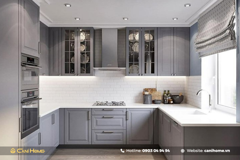30+ mẫu tủ bếp màu ghi xám đẹp lịch lãm, sang trọng