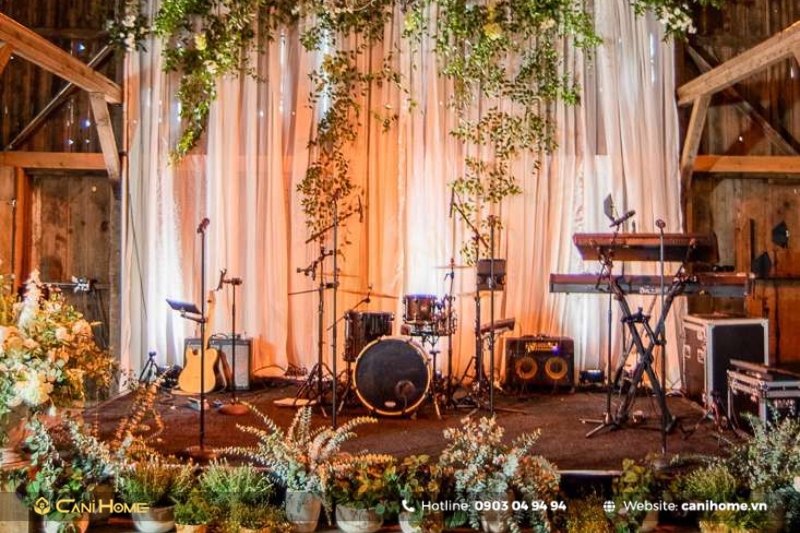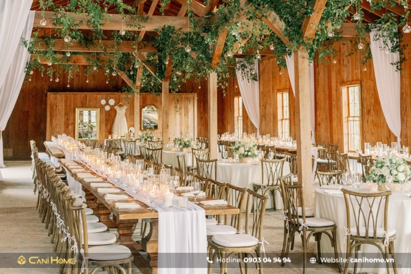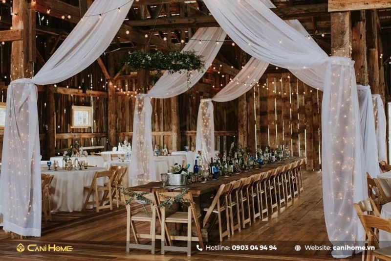 Tại Việt Nam, Rustic Wedding là một phong cách còn khá mới mẻ, nhưng đậy lại là phong cách được ưa chuộng ở các bữa tiệc tại Châu Âu. So với Rustic cổ điển hay hiện đại, Rustic Wedding mang dáng vẻ mềm mại và bay bổng hơn. Không gian thường được điểm xuyết bởi những bó hoa khô, lọ hoa hồng trắng hay hoa ly với tông màu nhã nhặn, cổ điển. Sự kết hợp ấy đem đến một khung cảnh thanh lịch, vintage đầy cảm xúc, khiến phong cách này trở thành lựa chọn yêu thích của nhiều cặp đôi trẻ.