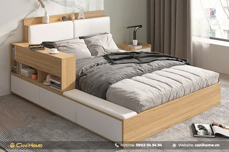• Ngoài ra, quý khách hàng có thể đầu tư thêm cho mình những chiếc hộc kéo bên hông, đuôi giường hoặc những nắp đậy dưới nệm để chúng ta có thể tận dụng cất giữ thêm đồ đạc và tạo thêm điểm nhấn cho chiếc giường của mình.
