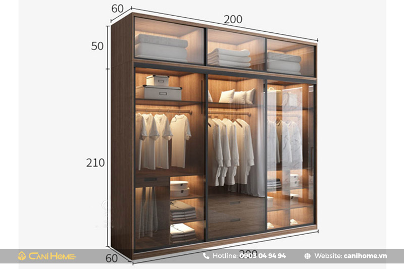Kích thước tiêu chuẩn của tủ quần áo cánh lùa