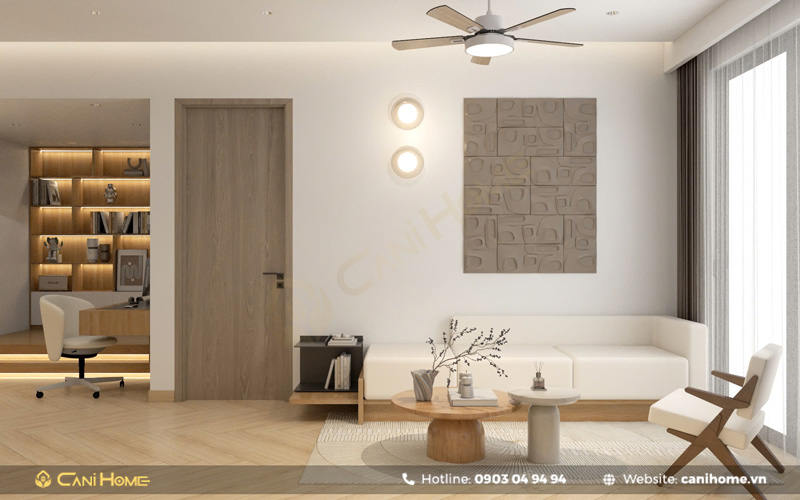 Nội thất trong căn hộ hiện đại sẽ được Canihome sẽ lựa chọn các phụ kiện nội thất theo tiêu chí nhỏ gọn và đa năng, giúp không gian trở nên rộng rãi và tiện nghi hơn. Bên cạnh đó, việc tận dụng ánh sáng tự nhiên và thiết kế không gian mở giữa phòng khách và nhà bếp cũng góp phần tạo cảm giác thông thoáng, phù hợp với các căn hộ có diện tích vừa và nhỏ.