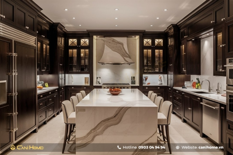 Những chất liệu này đặc biệt phù hợp với phong cách Luxury hoặc Tân cổ điển, giúp không gian trở nên đẳng cấp và ấn tượng hơn.