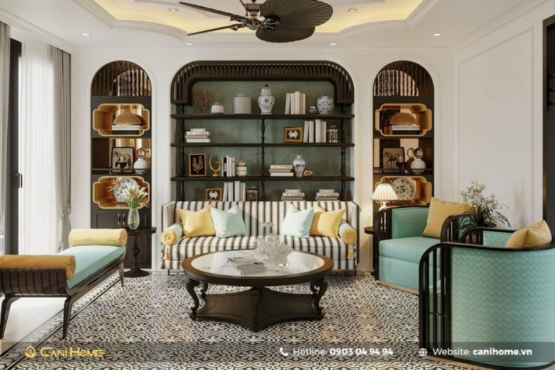 Điểm nổi bật của phong cách thiết kế Indochine là nét điện cổ kính pha chút hiện đại của những họa tiết và vật dụng nội thất, mang màu sắc mộc mạc gần gũi nhưng vẫn tối ưu công năng sử dụng.
