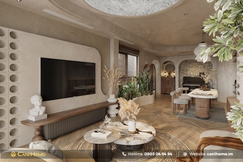 Phong cách nội thất Wabi Sabi có nguồn gốc từ Nhật Bản và đề cao sự tối giản. Các món đồ nội thất được giữ ở trạng thái nguyên bản, mang vẻ đẹp mộc mạc, hoài cổ, giúp không gian toát lên sự giản dị và ấm áp.