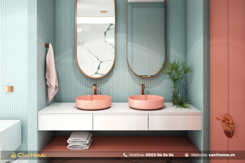 Trong đó, 60% là gam màu chủ đạo như trắng, kem, vàng nhạt giúp không gian sạch sẽ, hiện đại; 30% là màu cấp 2 như cam đất, xanh ngọc, pastel tạo sự ấm cúng; 10% còn lại là màu điểm nhấn như đỏ, cam, vàng để tăng sự nổi bật theo sở thích.
