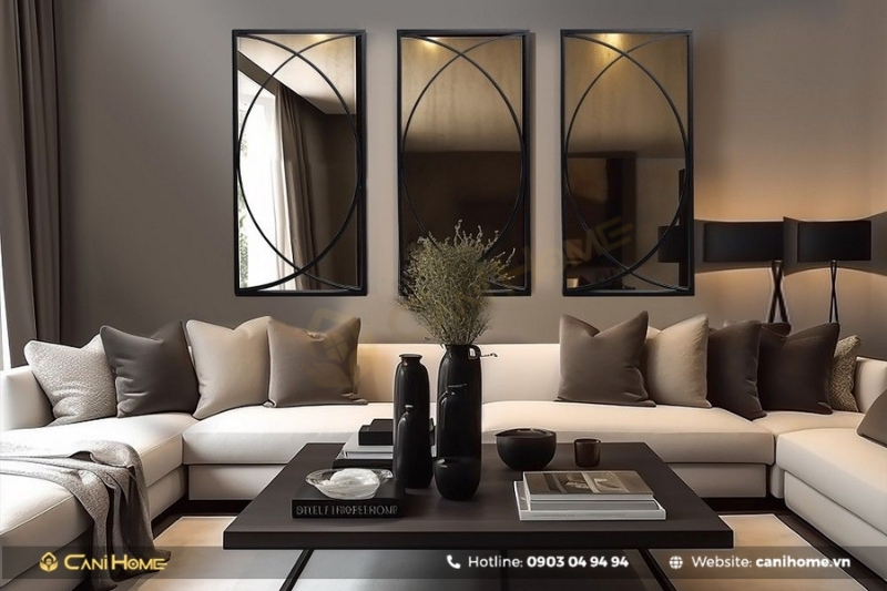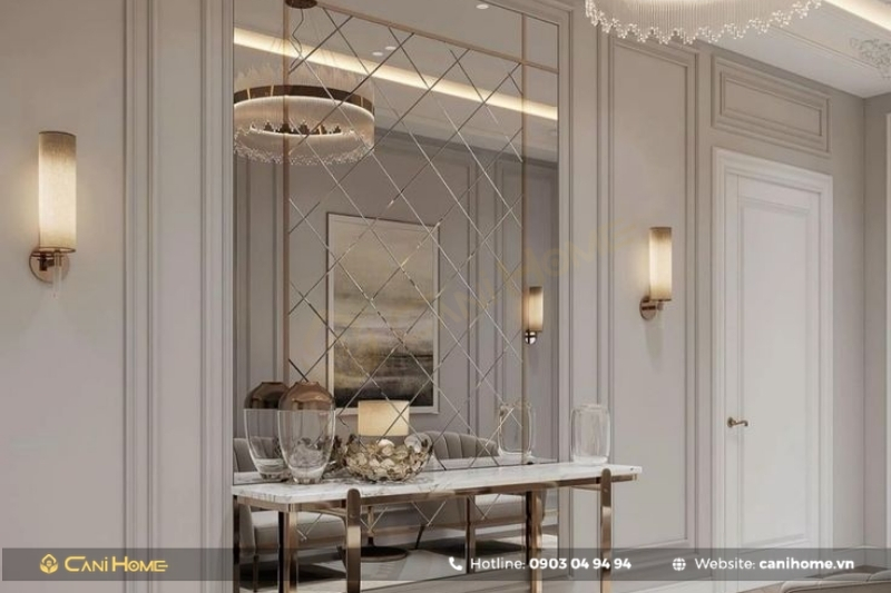 Gương trang trí là giải pháp lý tưởng giúp mở rộng không gian cho những căn hộ có diện tích khiêm tốn. Dù căn hộ 3 phòng ngủ không quá chật chội, nhưng việc sử dụng gương vẫn rất cần thiết để tạo cảm giác rộng rãi và thoáng đãng hơn.