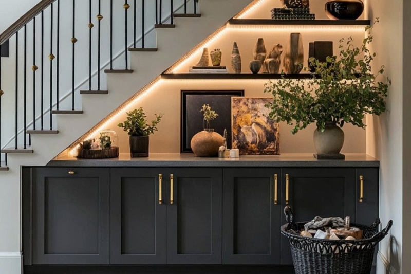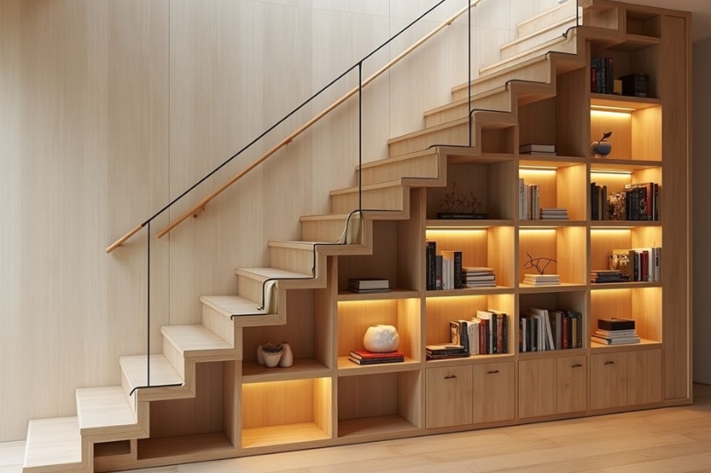 Ngoài các mẫu tủ tivi, tủ sách, tủ quần áo hay tủ rượu, còn có nhiều thiết kế tủ cầu thang tiện ích khác như tủ giày, tủ trang trí, tủ chứa đồ đa năng hoặc kệ kết hợp tủ kín. Mỗi mẫu đều mang đến công năng riêng, từ lưu trữ, trưng bày đến decor không gian, giúp tối ưu diện tích và tăng tính thẩm mỹ cho ngôi nhà. Tùy theo nhu cầu và phong cách nội thất, gia chủ có thể lựa chọn mẫu tủ phù hợp để tạo nên không gian sống gọn gàng, hiện đại và tinh tế.