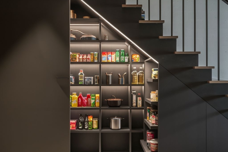 Đa dạng công năng sử dụng: Tủ gầm cầu thang có thể được thiết kế linh hoạt theo nhu cầu: tủ giày, tủ rượu, tủ sách, tủ quần áo, tủ trang trí hay tủ chứa đồ dùng sinh hoạt, mang lại sự tiện ích đa dạng công năng cho gia chủ.