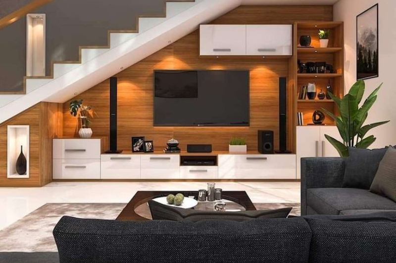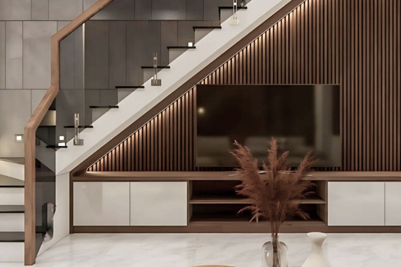 Tủ tivi gầm cầu thang có thể được chế tác từ nhiều chất liệu như gỗ tự nhiên, gỗ công nghiệp, kim loại, kính hoặc nhựa cao cấp, với đa dạng kiểu dáng và kích thước. Nhờ đó, gia chủ dễ dàng lựa chọn thiết kế phù hợp với phong cách nội thất và diện tích không gian của mình.