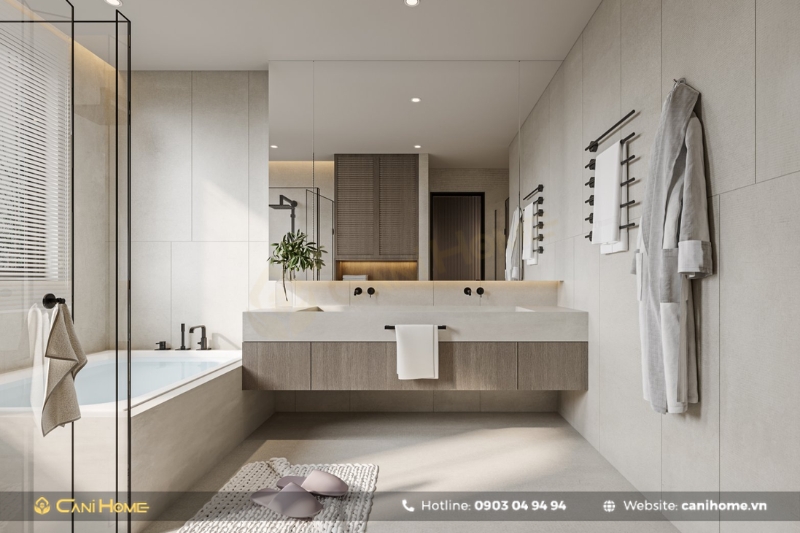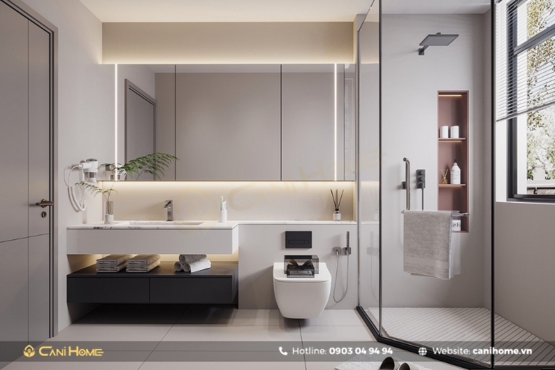 Dù diện tích hạn chế, nội thất phòng vệ sinh vẫn cần đảm bảo tiện nghi và an toàn khi sử dụng. Thiết kế ưu tiên các thiết bị gọn gàng, bố trí khoa học. Vật liệu chống ẩm, chống trơn trượt là yếu tố quan trọng trong thiết kế phòng vệ sinh căn hộ nhỏ.