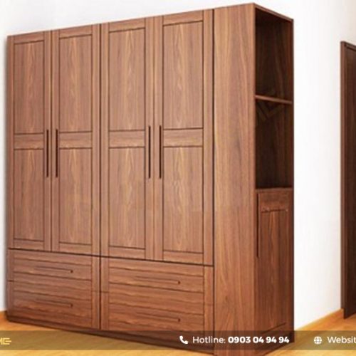 Tủ quần áo gỗ tần bì 4 cánh rộng rãi, tiện nghi