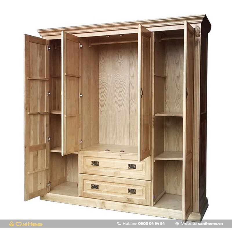 Tủ quần áo gỗ tần bì 4 cánh rộng rãi, tiện nghi