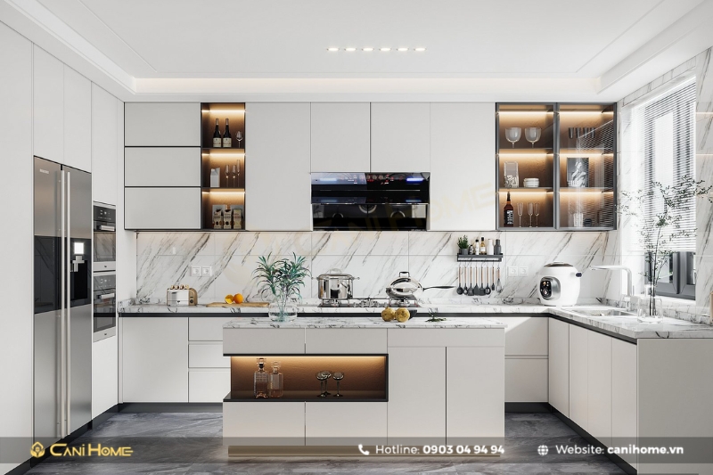 Một số mẫu tủ bếp gỗ MDF phủ acrylic đẹp do Canihome thực hiện