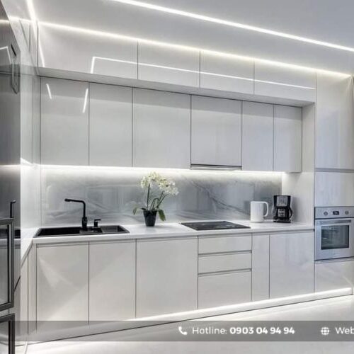 | Sản xuất theo yêu cầu | Mẫu mã & màu sắc đa dạng. Khách hàng có thể đặt hàng theo yêu cầu, thiết kế và sản xuất phù hợp với kích thước không gian bếp. |