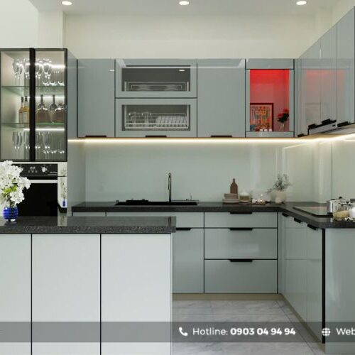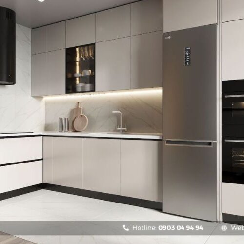 Sự kết hợp này không chỉ tạo nên một sản phẩm đẹp mắt mà còn đáp ứng yêu cầu tiện dụng, giúp không gian bếp trở nên hiện đại và tiện nghi hơn.