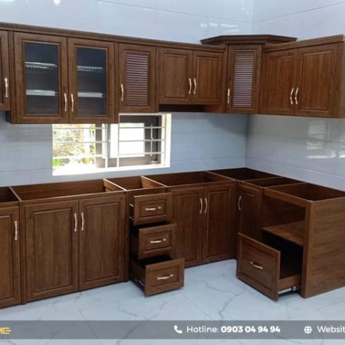 Tủ bếp nhôm nội thất giả gỗ cao cấp