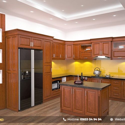 Những mẫu tủ bếp cổ điển thường xe có họa tiết và hoa văn cầu kỳ hơn. Đồng thời, tông màu vân gỗ cũng phù hợp với phong cách này, đảm bảo mang lại sự hài hòa cho không gian nhà bếp.