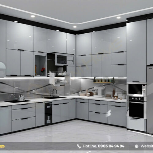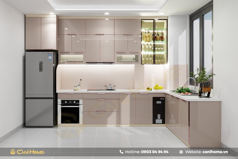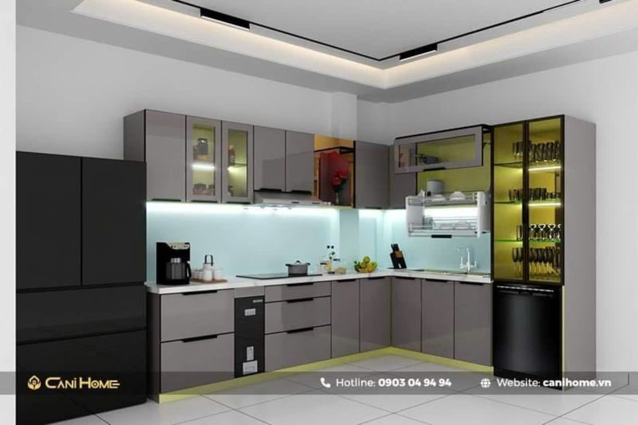 - Tủ bếp nhôm hợp kim chữ L đa năng, phù hợp nhiều không gian