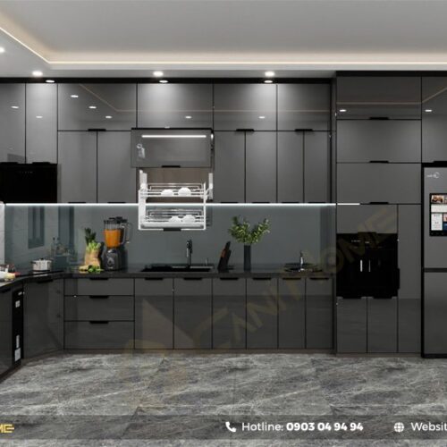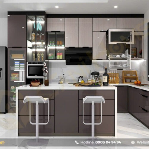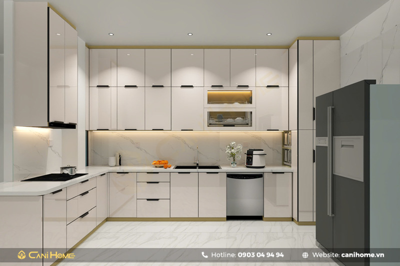 - Tủ bếp nhôm hợp kim chữ U cho nhà bếp không gian rộng rãi