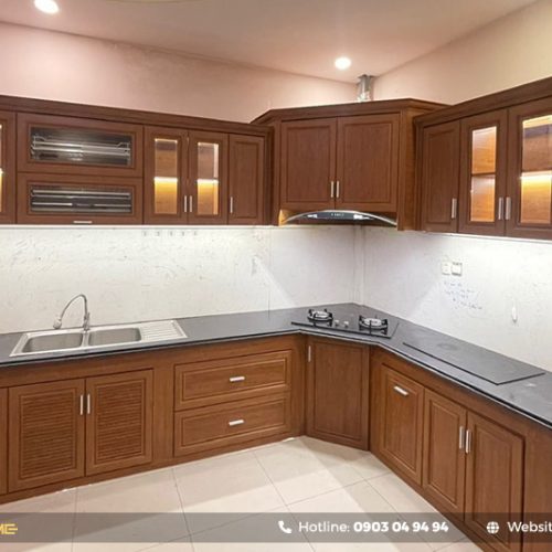 Hiện nay, trên thị trường có nhiều dòng nhôm khác nhau, tùy vào nhu cầu, sở thích, khả năng tài chính mà khách hàng có thể đưa ra lựa chọn phù hợp. Dưới đây là một số mẫu tủ bếp nhôm vân gỗ nổi bật đang được CaniHome thiết kế – thi công, lắp đặt trọn gói.