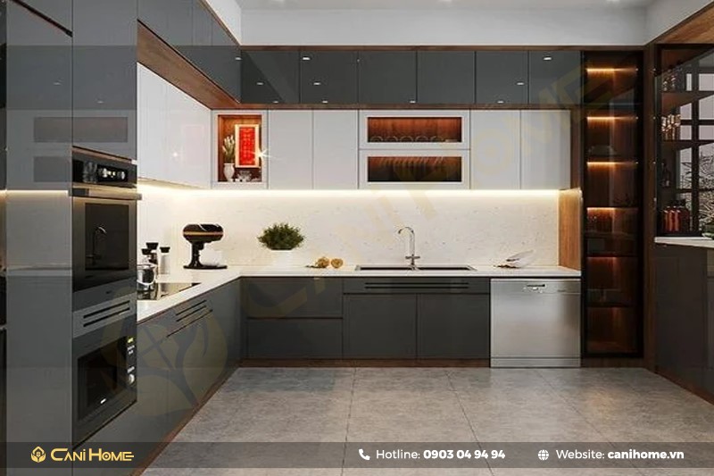Tủ bếp thiết kế mở kèm theo kệ trang trí