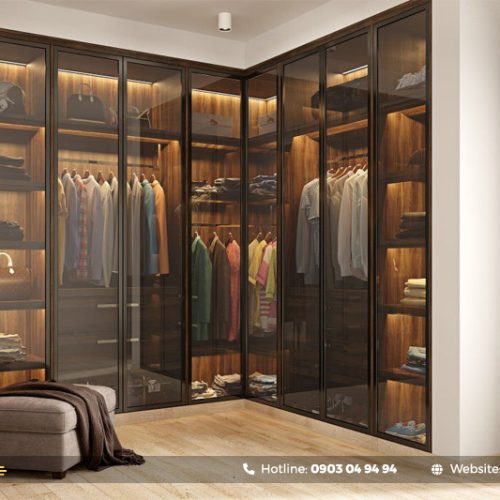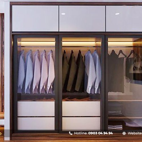 Tủ quần áo âm tường bằng nhôm kính