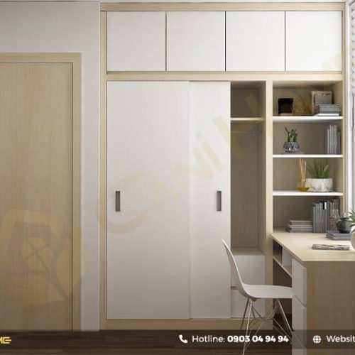Mẫu tủ quần áo kết hợp bàn làm việc mà Canihome đã thực hiện 1