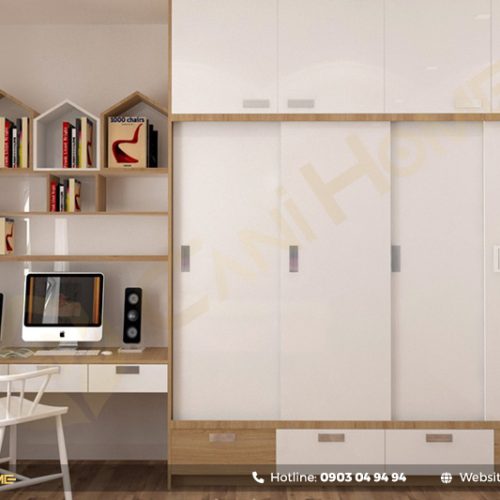 Mẫu tủ quần áo kết hợp bàn làm việc mà Canihome đã thực hiện 5