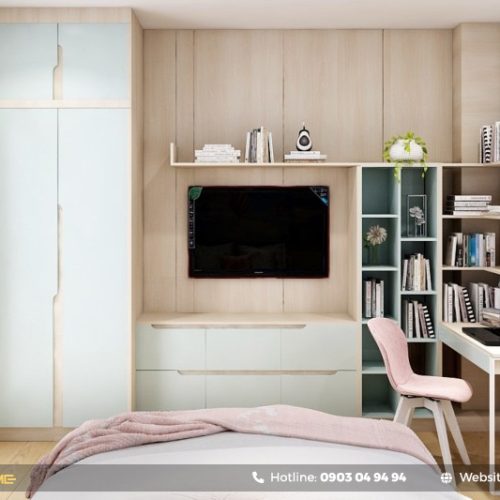 – Tối ưu hóa không gian: Sử dụng tủ quần áo kết hợp kệ tivi giúp tận dụng một cách hiệu quả không gian trong phòng. Bạn có thể tích hợp tủ quần áo và kệ tivi vào cùng một khu vực, tạo ra một không gian tiện lợi và gọn gàng.