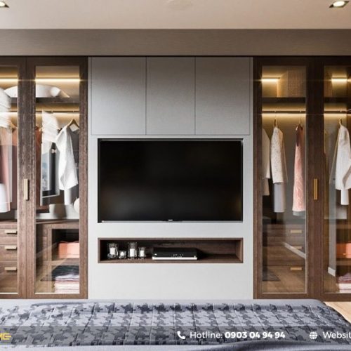 Một số mẫu tủ quần áo kết hợp kệ tivi mà Canihome đã thi công thực hiện: