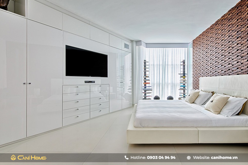 Hiện nay, tủ quần áo kết hợp kệ tivi trở thành xu hướng trong thiết kế nội thất phòng ngủ hiện đại. Mẫu tủ này không chỉ mang lại nhiều tiện ích mà còn góp phần tăng tính thẩm mỹ cho không gian phòng ngủ.